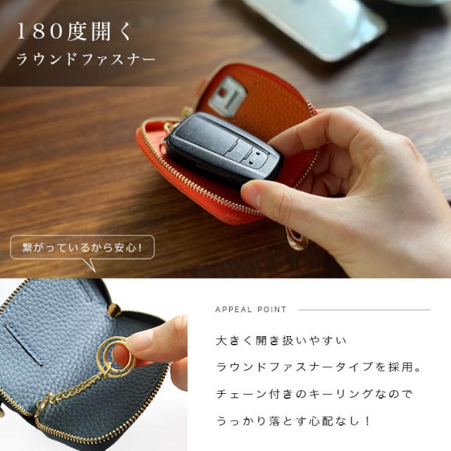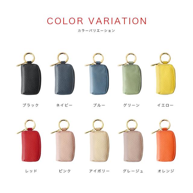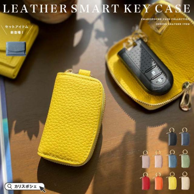カリスポシェ CharisPoche スマートキーケース メンズ レディース ユニセックス 本革 シュリンクレザー ラウンドファスナー キーケース サークルカラビナ ブラック ブルー グリーン グレージュ アイボリー ネイビー オレンジ ピンク レッド イエロー ab-kp501