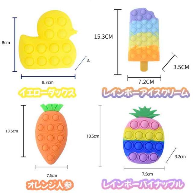 安心安全の材料:小さな子供がいても安心の柔らかシリコン、触り心地も抜群で何度押したときに感触がたまらなく気持ちイイ感じの洗えるプッシュポップです。