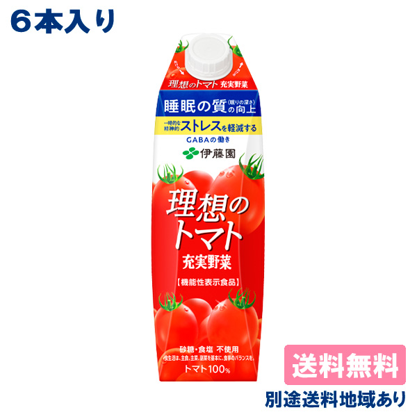 【伊藤園】 充実野菜 理想のトマト 1000ml x 6本 紙パック 【送料無料】【別途送料地域あり】屋根型キャップ付容器 1L 機能性表示食品