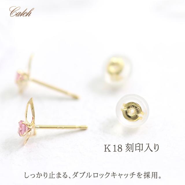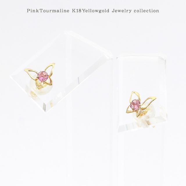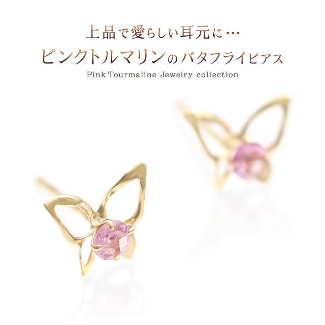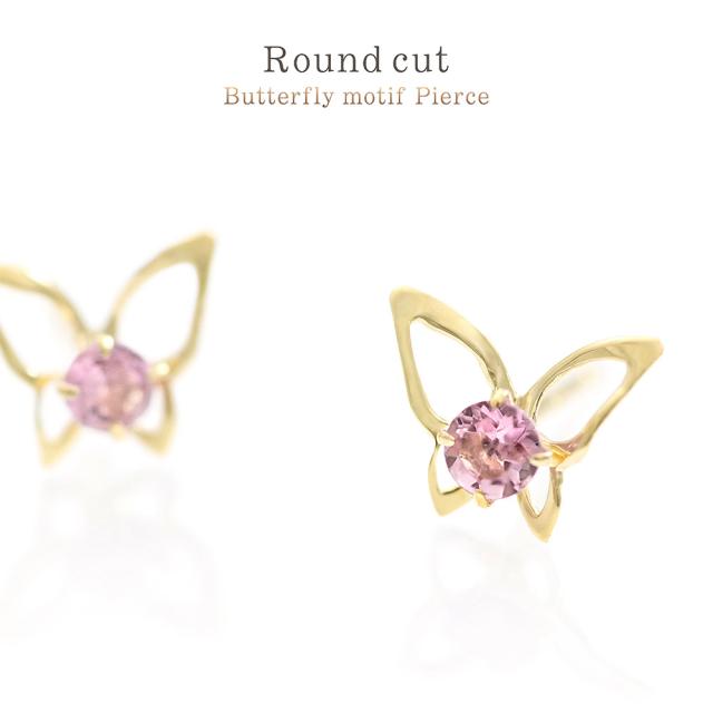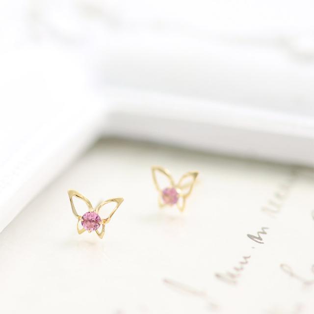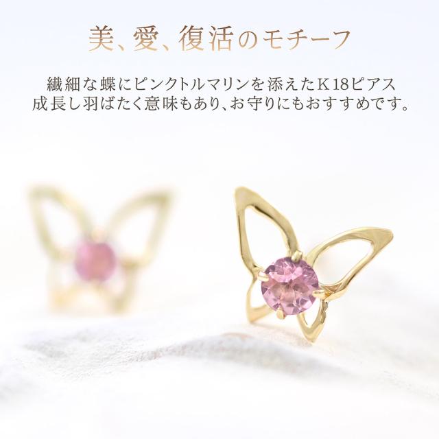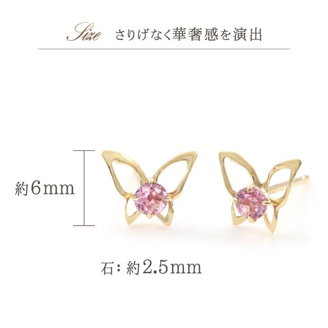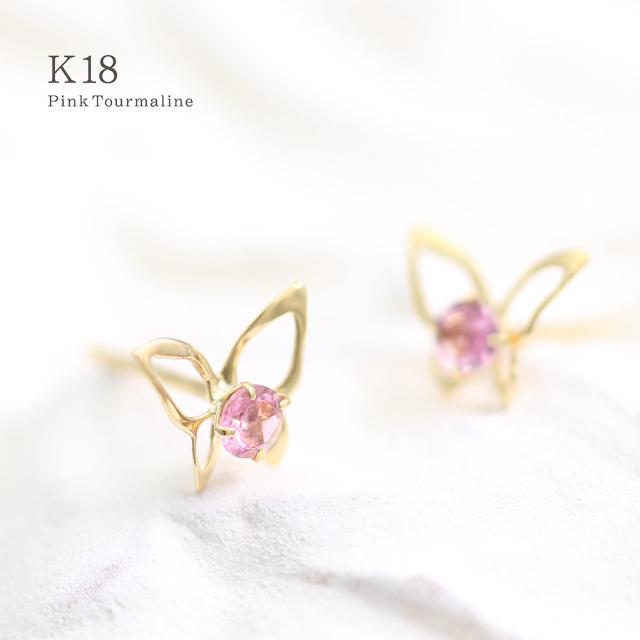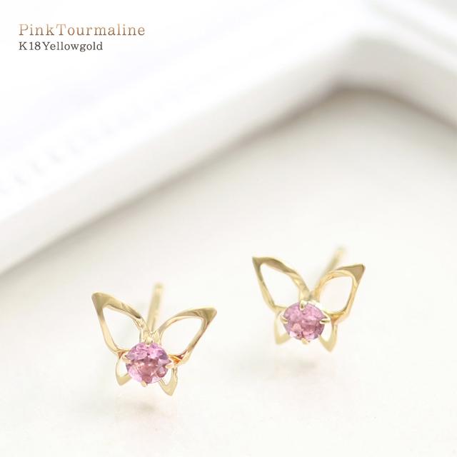 ピアス 18金 レディース イエローゴールド バタフライ 可愛い ピンクトルマリン 宝石 天然石 18K K18 10月誕生石 プレゼント 記念日 誕生日 お祝い ギフト 小ぶり 小さめ 蝶 ピンク色 本物 彼女 妻 奥さん 嫁 20代 30代 40代 ホワイトデー お返し