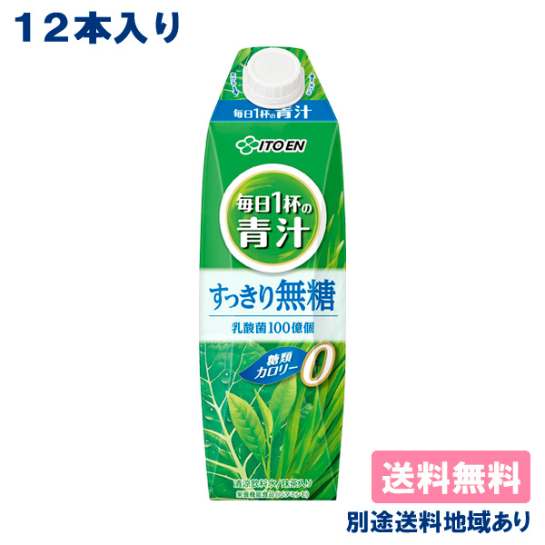 伊藤園 毎日1杯の青汁 すっきり無糖 紙パック 1000ml x 12本 (6本入 x 2ケース) 【送料無料】【 別途送料地域あり】 屋根型キャップ付容器 1L