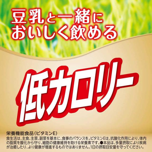 豆乳、砂糖、大麦若葉汁、野菜汁(ブロッコリー、ケール)、大麦若葉粉末、緑茶粉末、フラクトオリゴ糖シロップ、亜鉛酵母、寒天/乳化剤、 増粘多糖類、ビタミンE、(一部に大豆を含む)