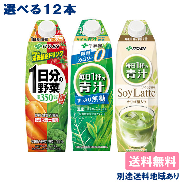 【伊藤園】野菜飲料 青汁 1000ml紙パック 選べる12本セット 1000ml x 12本 (各6本 x 2種類)【送料無料】 【別途送料地域あり】 1L 屋根型キャップ付容器 野菜ジュース 1日分の野菜 毎日1杯の青汁