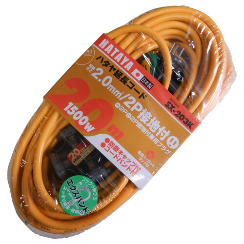 HATAYA(ハタヤ) SX延長コード 20m 3芯(2P接地(アース)付) SX-203K-Y(イエロー) ソフトVCTF2.0 15A・125V ★◆