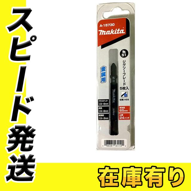 マキタ No51(A-15730) ジグソーブレード(5枚入) 金属用(プラスチックも可) 全長90mm 山数24 Bタイプ