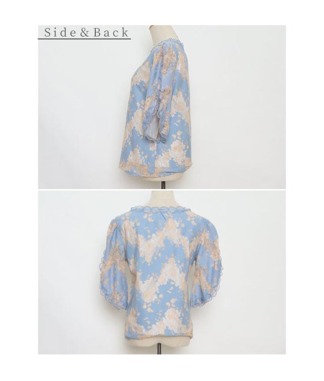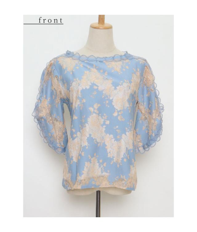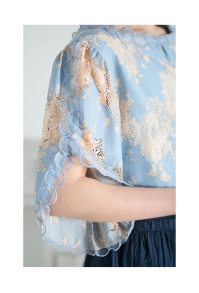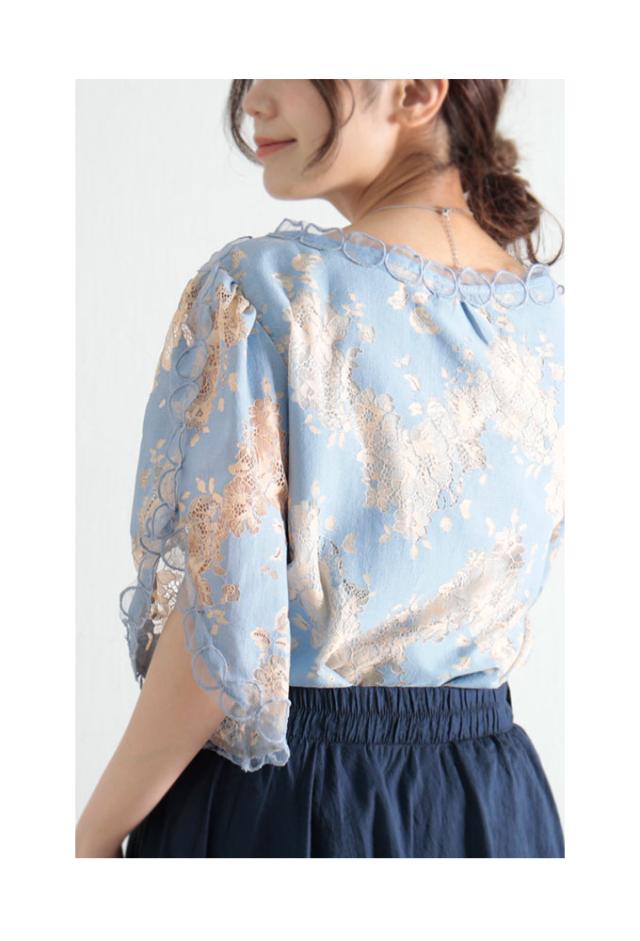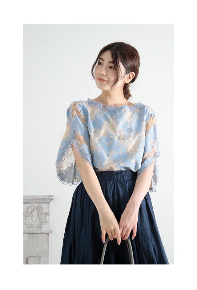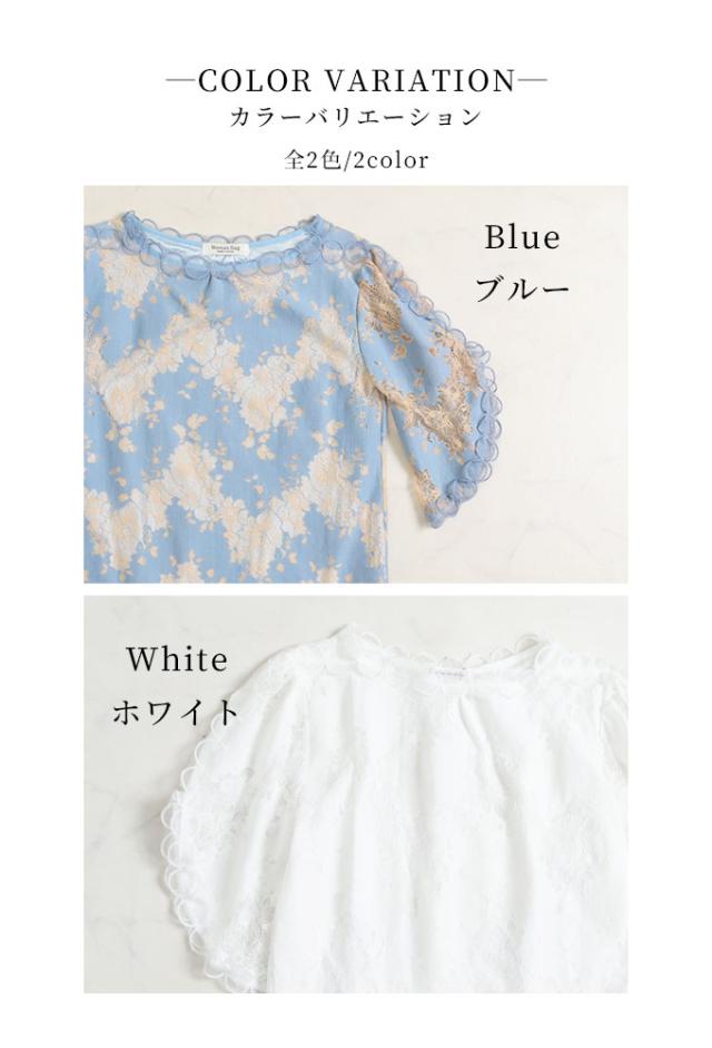 春新作 まあるいチュール連なる繊細な花レーストップス レディース ファッション トップス カットソー 青 ブルー 半袖 花柄 大人可愛い ホワイト 白 40代 50代女性 ファッション 60代 ミセスファッション サワアラモード sawa a la mode otona mode-7701