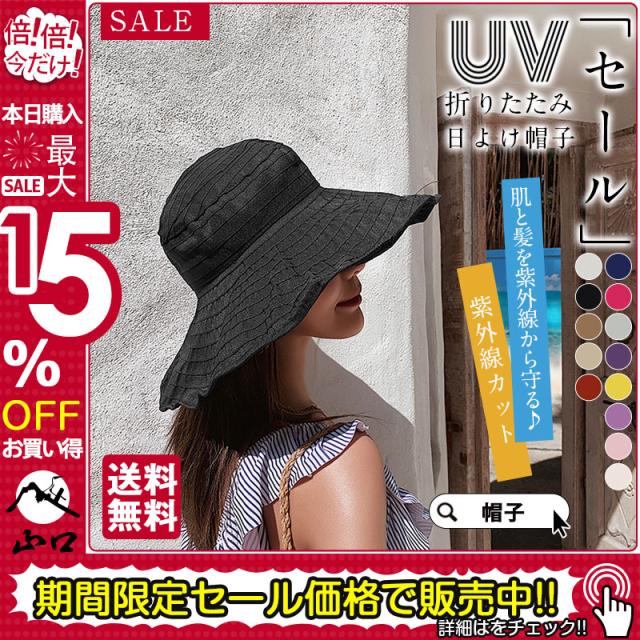 セール! 帽子 レディース UVカット つば広 ハット 紫外線カット 日よけ帽子 折りたたみ あご紐 自転車 飛ばない 春 夏 母の日 送料無料