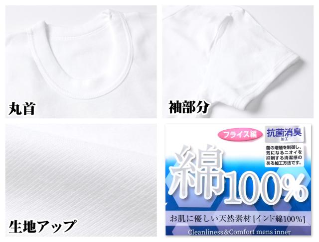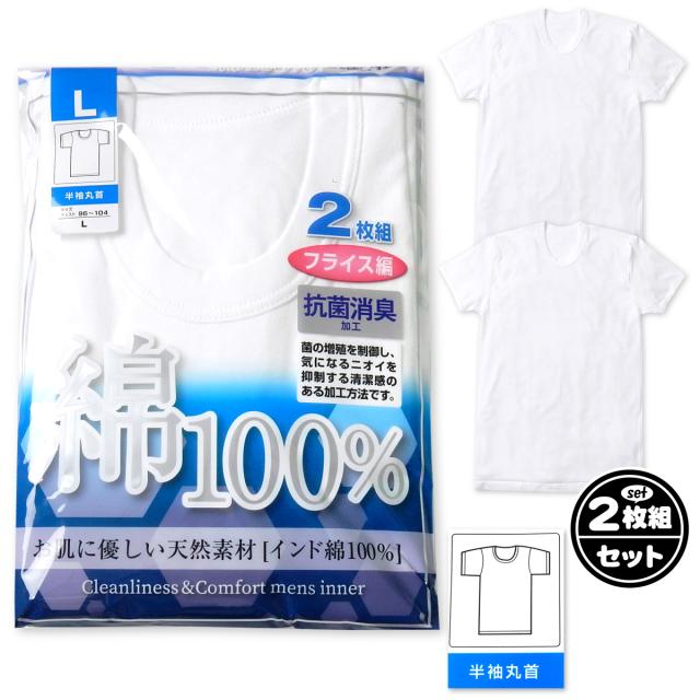 【送料無料】2枚組セット 紳士 メンズ 抗菌消臭加工 半袖 丸首 シャツ 綿100% インド綿 肌着 下着 S M L LL 3L yg-1247【メール便対応】