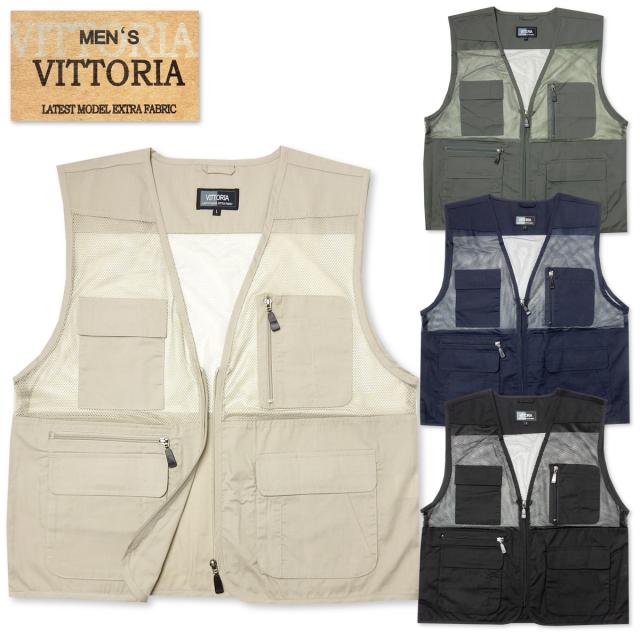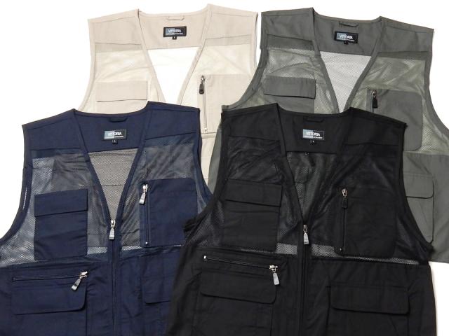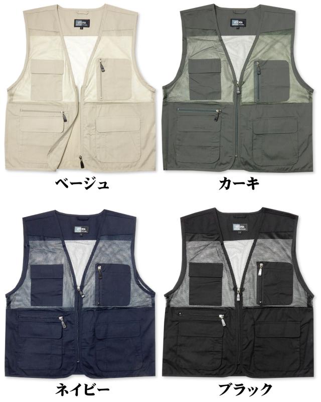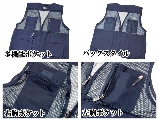【送料無料】紳士 メンズ アウター ベスト フルジップ 前開き メッシュ切替 通気性 多機能ポケット 無地 M L LL yg-1260【メール便対応】