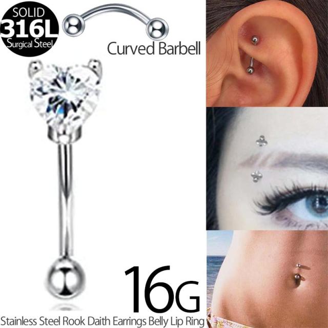 [ 16G 鼻 耳 臍 軟骨 口 ] クリスタルハート 16ゲージ ボディピアス キラキラ ジルコニア 1粒 ロック ルーク ダイス スナッグ 臍ピアス へそピアス ヘソピアス バナナバーベル カーブバーベル サージカルステンレス316 メンズ レディース アイブロー 眉 ボディーピアス