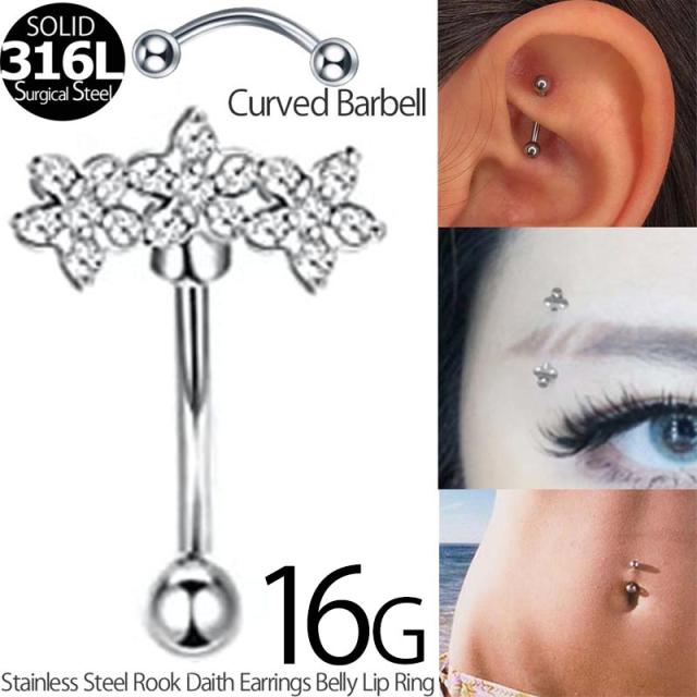 [ 16G 鼻 耳 臍 軟骨 口 ] 3連スターフラワー 16ゲージ ボディピアス 花 星 3個 クリスタル ロック ルーク ダイス スナッグ 臍ピアス へそピアス ヘソピアス バナナバーベル カーブバーベル サージカルステンレス316 メンズ レディース アイブロー 眉 ボディーピアス
