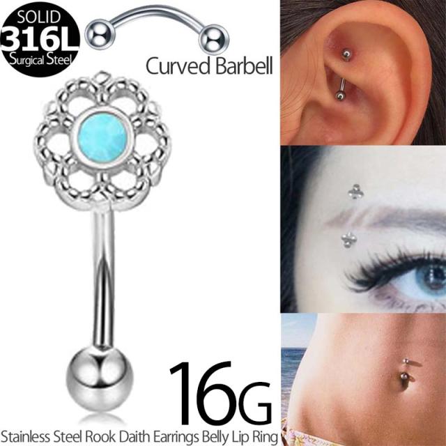 外ネジタイプのアウトターナルタイプのネジボールのカーブバーベル型ボディーピアスは装着もしやすく男性からも女性からも人気。