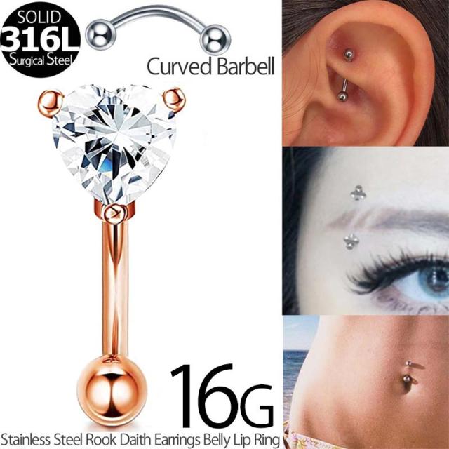 [ 16G 鼻 耳 臍 軟骨 口 ] ピンクゴールドクリスタルハート 16ゲージ ボディピアス 1粒 ジュエル ロック ルーク ダイス スナッグ 臍ピアス へそピアス ヘソピアス バナナバーベル カーブバーベル サージカルステンレス316 メンズ レディース アイブロー 眉