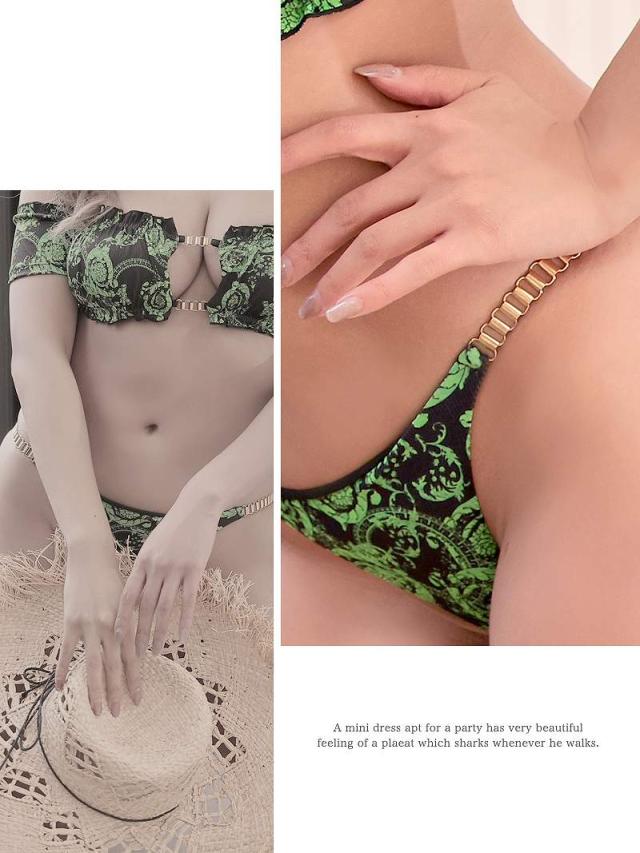 ☆トレンド感たっぷりのエスニックデザインが派手可愛い大人バンドゥービキニはゴールドチェーンがインパクト抜群♪