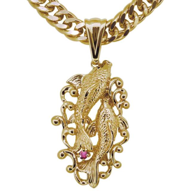 7月誕生石ルビーを使用した18金製の、鯉モチーフメンズネックレス(ペンダント)です。