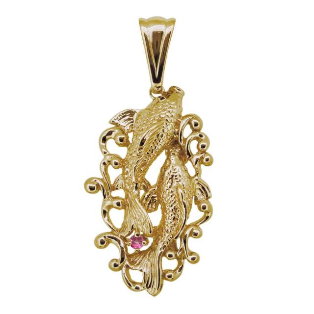 10月誕生石ピンクトルマリンを使用した10金製の、鯉モチーフメンズペンダントヘッドです。