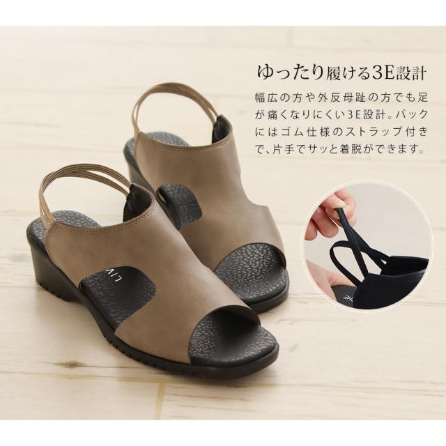ゆったり3E設計なので幅広の方や外反母趾の方でも足が痛くなりにくい。