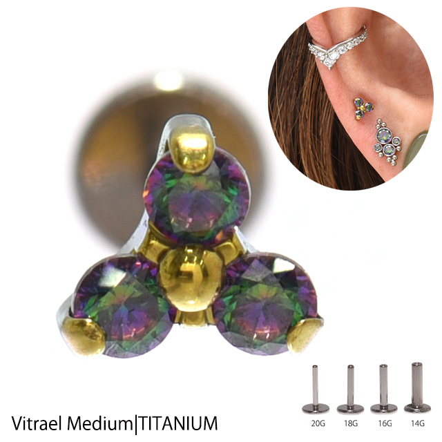 挿すだけ装着 プッシュピン 20G 18G 16G 14G ヴィトレイル トリニティ アンティークゴールド チタンピアス 金属アレルギー対応 ラブレットスタッズ ロブ 軟骨ピアス ボディピアス