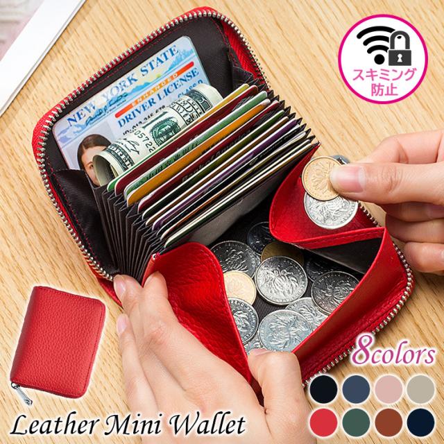 ミニ財布 小さな財布 レディース メンズ ラウンドファスナー じゃばら財布 コンパクト 大容量 小銭れ カードケース ミニウォレット スキミング防止 磁気防止 名刺入れ コインケース l359 ソフトレザー 牛革 おしゃれ RFID 男性 女性 誕生日 プレゼント ギフト