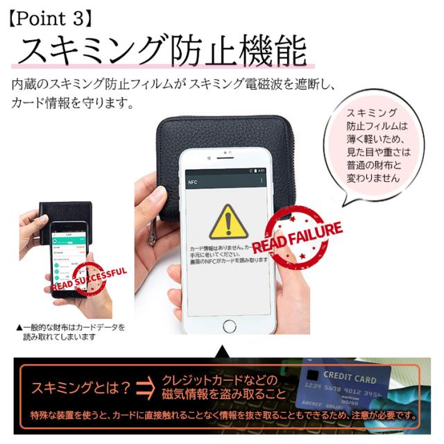 内蔵のスキミング防止フィルムがスキミング電磁波を遮断し、カード情報を守ります。