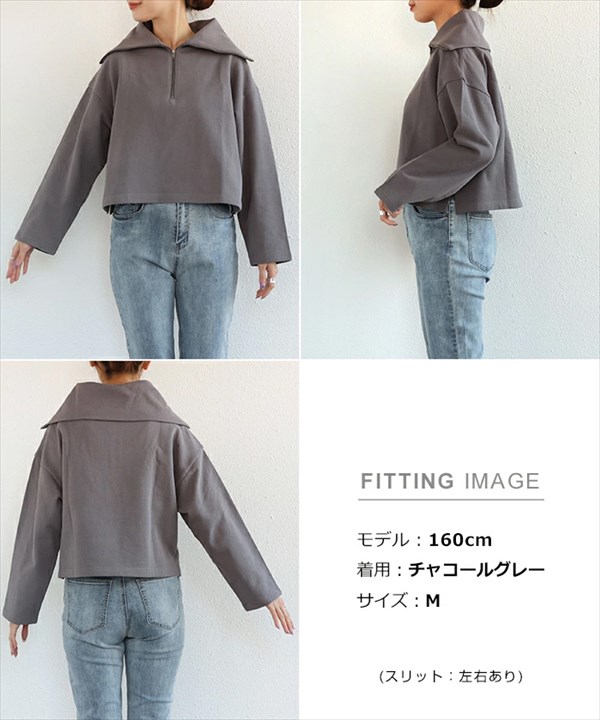 コットン 裏毛 短丈 ハーフジップ セーラーカラー 長袖 スウェット トップス レディース ショート丈 ドロップショルダー トレンド感 春 夏 秋 冬 オフィスカジュアル かわいい お出かけ デート 楽ちん ゆったり Ladies 20代 30代 40代