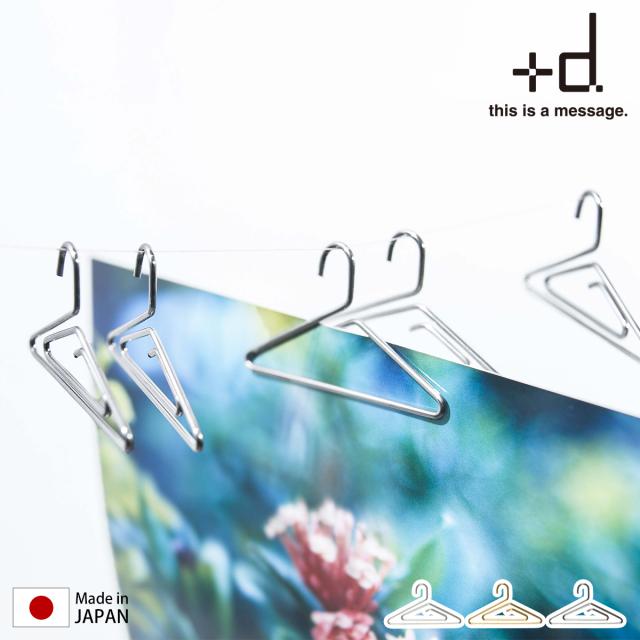 ハンガーの形をしたクリップ『 +d PhotoHanger( プラスディー フォトハンガー )』。大切な写真やお気に入りのポストカードに、穴を開けることなく飾ることができます。ハンガーのフック部分を画びょうやピンに掛けたり、紐に吊るすなど飾り方は自由自在。フォトクリップとして壁面インテリアを楽しむのはもちろん、メモやレシピを挟むのもおすすめ。贈り物に手紙やメッセージカードを添える際にも活躍します。