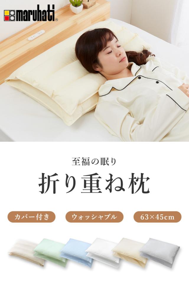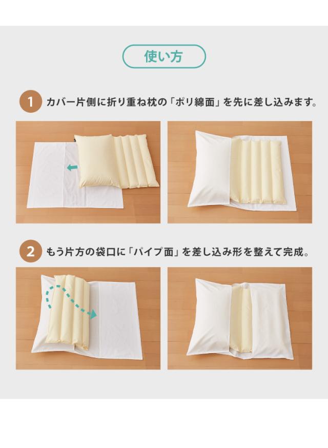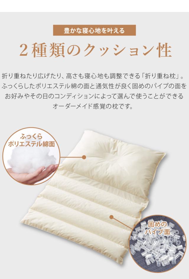 折り重ね枕 ウォッシャブル 43×63cm パイプ ポリエステル綿 丸八真綿 高さ調整 寝心地調整 専用カバー付 綿100% 安眠 快眠 シンプル 機能的 折り畳み枕 まくら【送料無料】