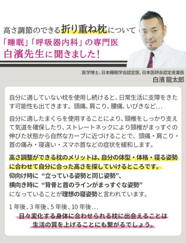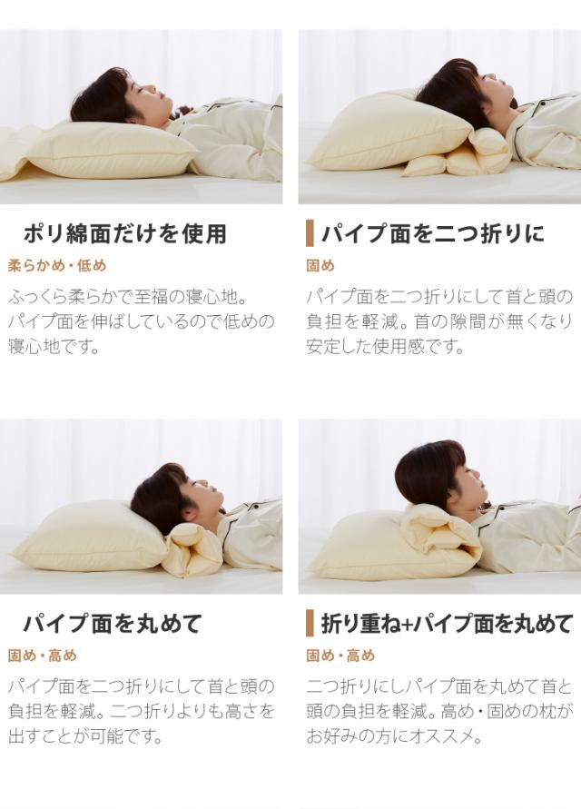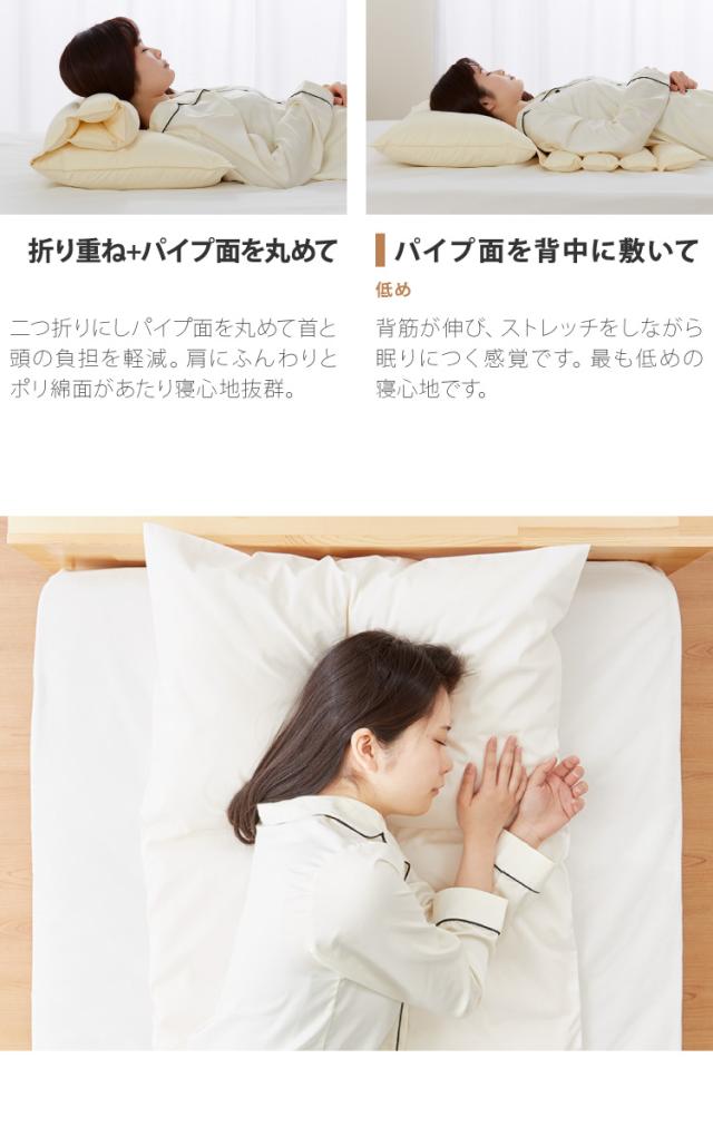 折り重ね枕の寝方は変幻自在!肩口から徐々に高めるように傾斜をつけてご使用いただければ 逆流性食道炎 対策にもご使用頂けます。