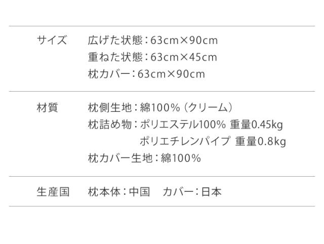 枕サイズ:63cm×90cm(広げた状態) 63cm×45cm(重ねた状態)