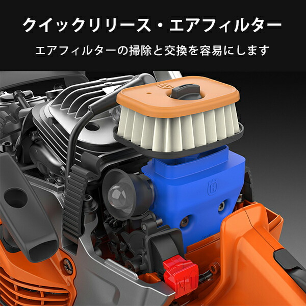 クイックリリース・エアフィルター仕様で、エアフィルターの掃除と交換が簡単です。 -