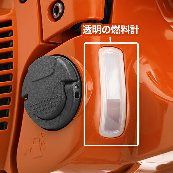 透明でできた燃料メーターが燃料の残量を確認するのに役立ちます。 -