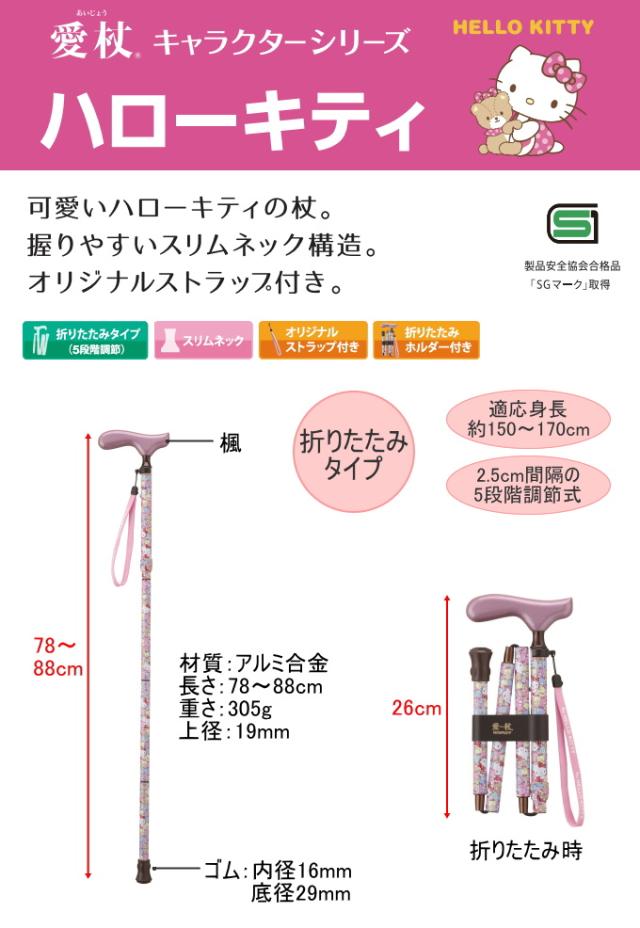 愛杖 ハローキティ 折りたたみステッキ 木製グリップ 送料無料 杖 折り畳み 介護 シニア サポート キャラクター ハローキティ