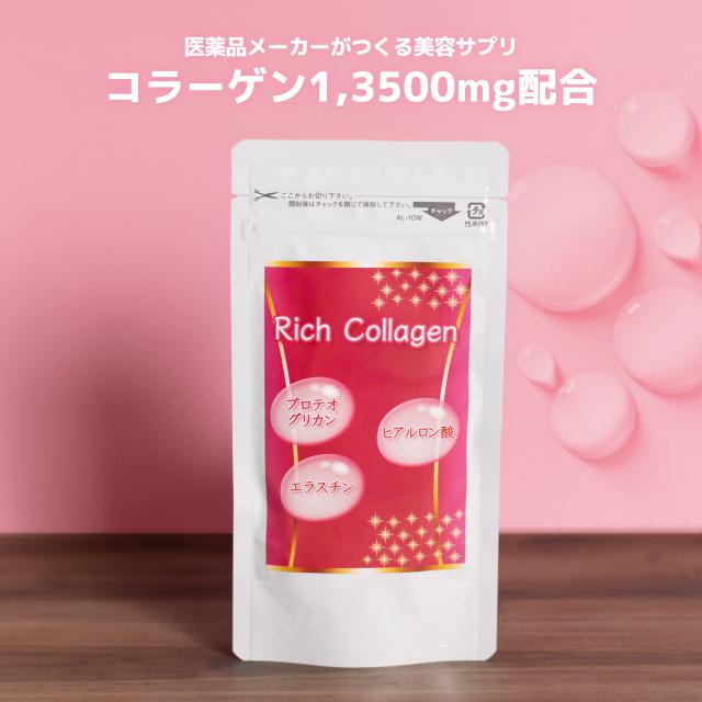 リッチ コラーゲン サプリ 送料無料 ヒアルロン酸 コラーゲンペプチド プロテオグリカン 美容 エラスチン サプリメント 1袋