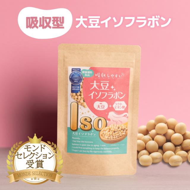 ・「吸収型大豆イソフラボン」と「ラクトビオン酸」の黄金比率配合