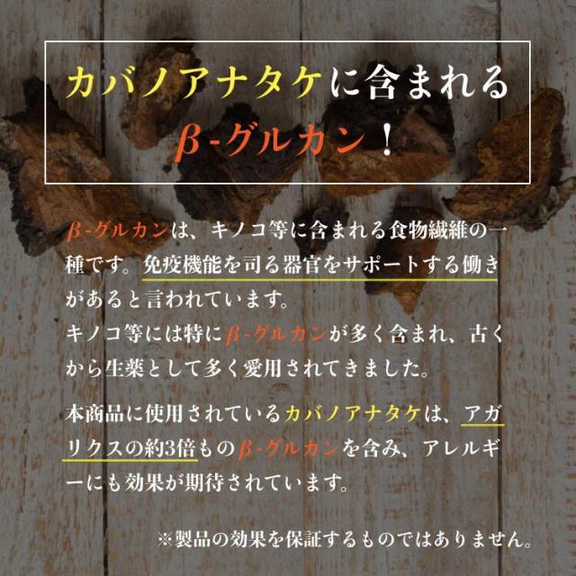 - 原材料/カバノアナタケ(ロシア産)、還元麦芽糖水飴、食用精製加工油脂/HPCL