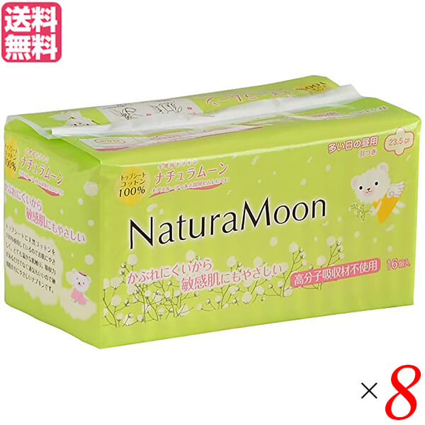 【超BIGラリー!ポイント最大+16%!】ナプキン 羽つき 生理用品 ナチュラムーン・ナプキン多い日の昼用(羽つき)16個入り G-Place 医薬部外品 8個セット