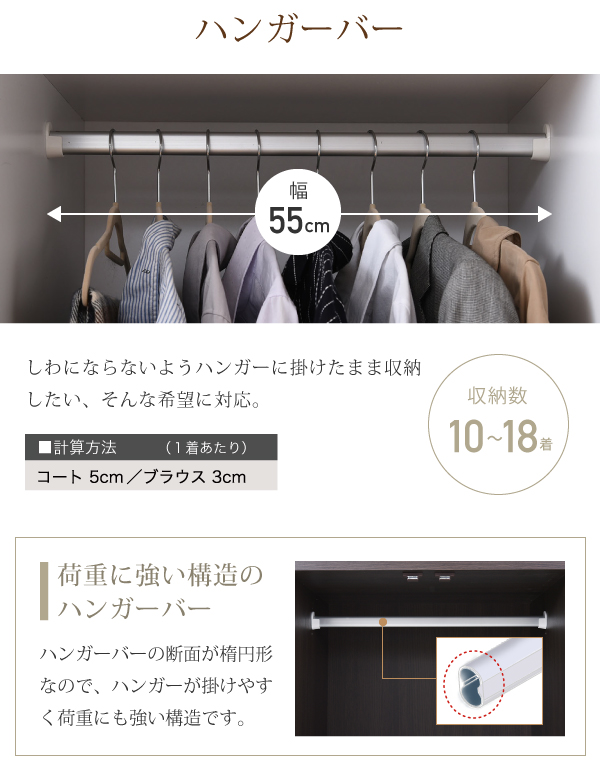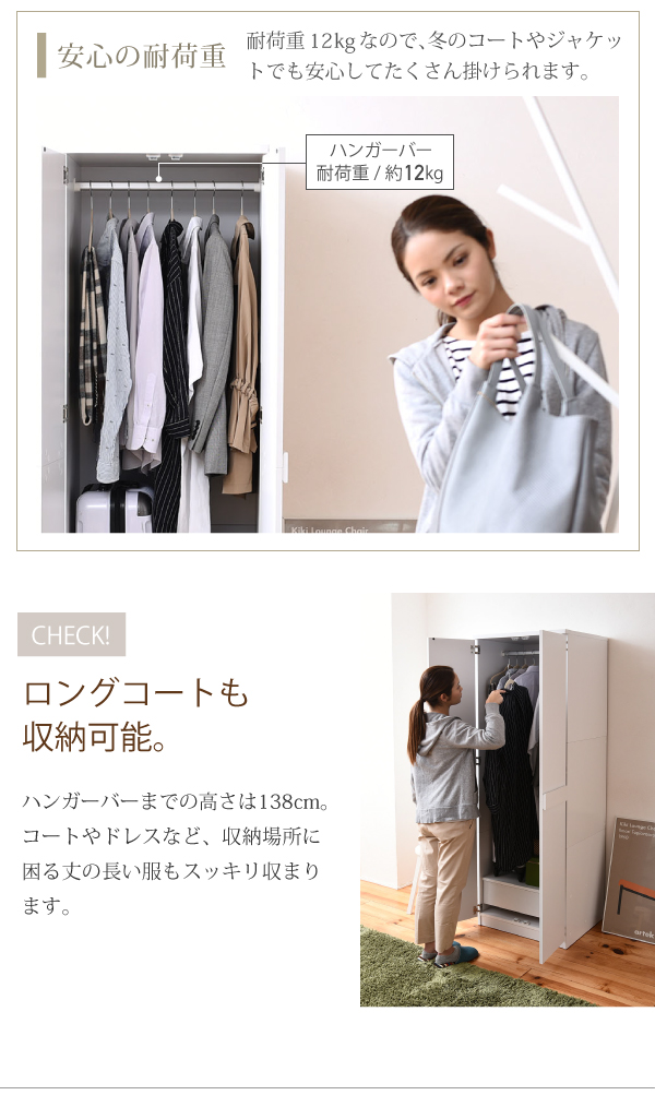 丈の長いコートもジャケットやシャツも掛けられるワードローブ。