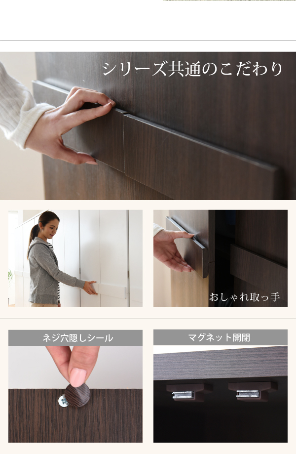 引き出しが付いているので、下着や靴下、タオルなどもまとめて片づけられます。