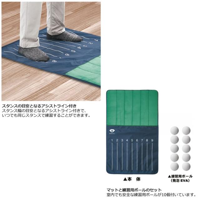 スタンス幅の目安となるアシストライン付きで、いつでも同じスタンスで練習することができます。