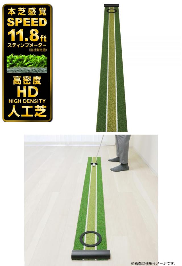 約1.8倍高密度人工芝※1を使用することで11.8フィート※2の高速ベントグリーンのタッチを再現した、ショートパットを決めるための「タッチ」と「方向性」が習得できるパターマット。
