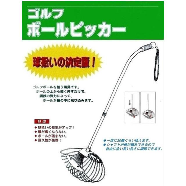 ゴルフボールを拾う用具です。ボールの上から軽く押すだけで銅鉄の弾力によって、ボールが輪の中に飛び込みます。