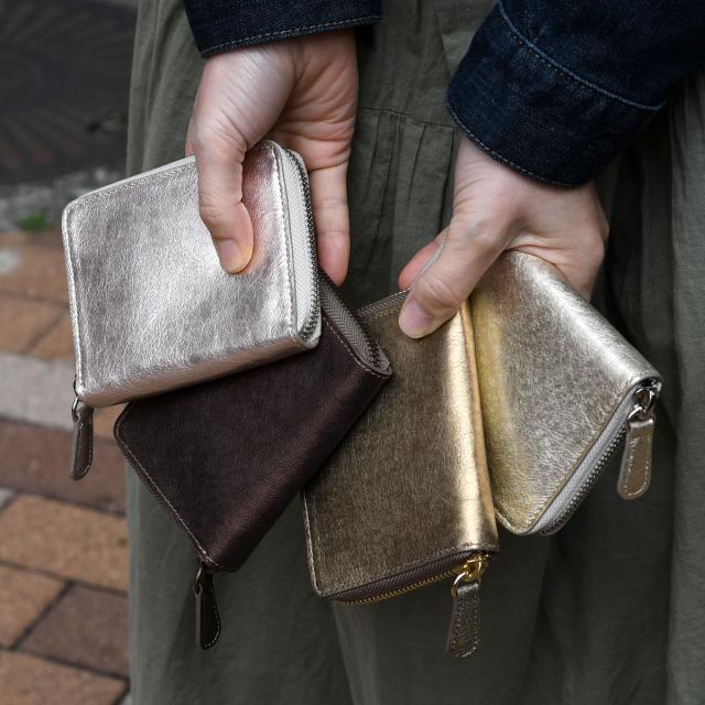 名称:TRIALOGUE STUDIO/メタリックゴートレザーラウンドファスナーコンパクト財布