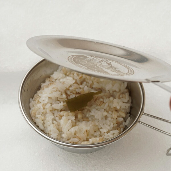 蓋があればシェラカップで1杯分の炊飯や蒸し料理が出来る様になります。