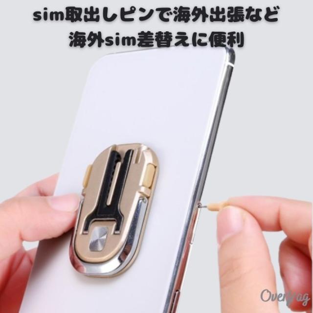 スマホリング スマホ タブレット アンドロイド iPad iPhone スタンド スマホホルダー バンカーリング 360°回転 車載ホルダー エアコン吹き出し口 フィン 装着 視聴スタンド 車 薄型 卓上 折畳 落下防止 多機能 面白い おしゃれ かわいい sim取出しピン ライトニング Type-c 充電口カバー 付 スマホナビ ナビ 動画視聴 プレゼント 景品 送料無料 ポイント消化【商品説明】回転軸は適度の硬さで、360°回転し180°反転可能、自由に調整し好きな角度でご利用いただけます。使用しないときは、折り畳むことができます。車のエアコン吹き出し口に装着する機能も備えていますので、これ一つで、スマホリング、卓上スマホスタンド、車載ホルダーに変身します。更にsim取出しピンにスマホ充電口カバーも搭載しています。【仕様】サイズ:約32*52.3*5.9mm重量:約21g素材:アルミ合金付属品:sim取出しピンスマホ充電口カバー:ライトニング用・Type-c用本体に収納されてます。