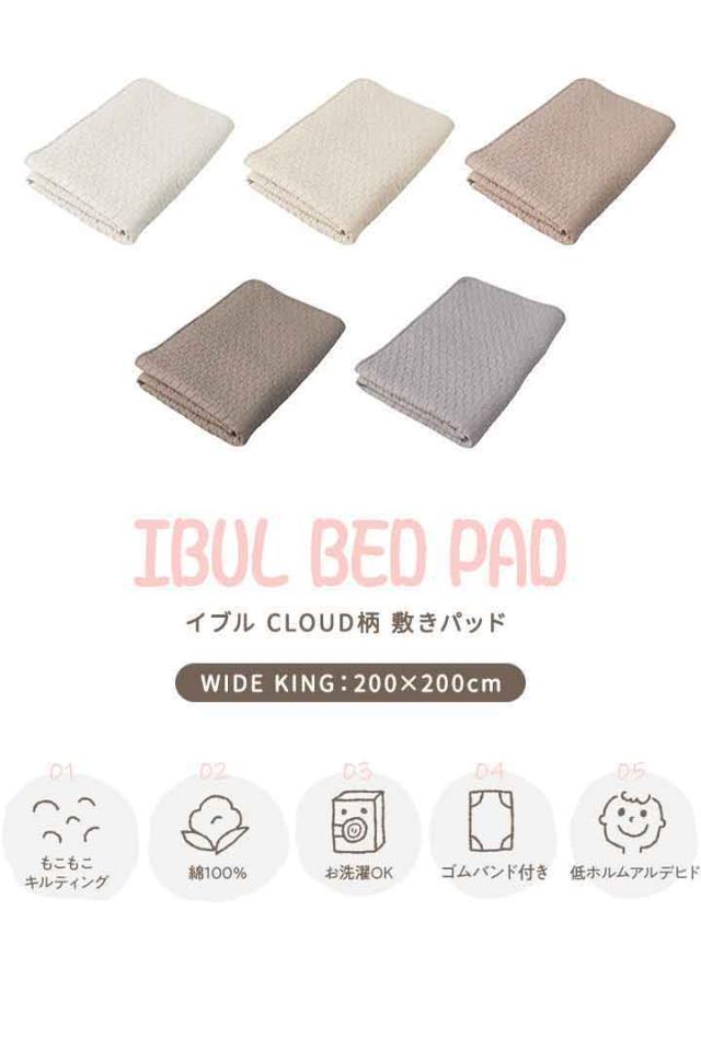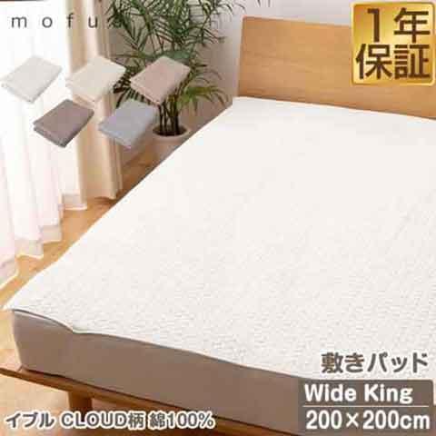 mofua(モフア)イブル CLOUD柄 綿100% 敷きパッド キルティング K ワイドキングサイズ 200cm×200cm オールシーズン もこもこ キルティング 洗える 洗濯OK 低ホルム 敷パッド キルトパッド オールシーズン 敷き布団用 カバー 赤ちゃん 北欧 送料無料
