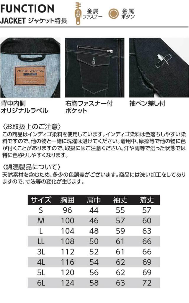 作業着 通年 Asahicho YOROI WORKS LIGHT デニム ジャケット K130 軽量 スリム ストレッチ