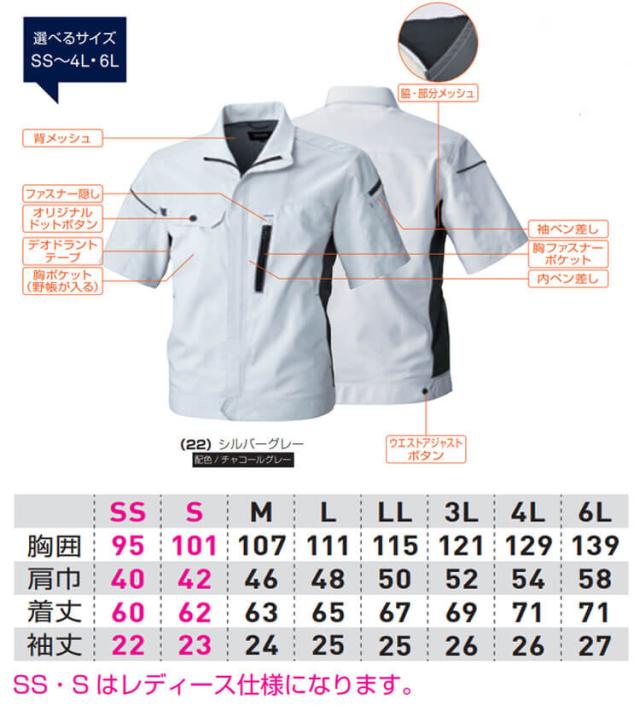 ※SS・Sはレディース仕様になります。