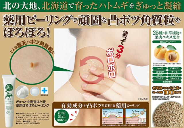 2個セット ぎゅっと北海道はと麦 薬用ぽろぽろピーリング 首元などの気になる角質粒にアプローチ! | 送料無料 首 目元 手 足 ポツポツ 角質ケア ピーリング 角質粒 ボツボツ ポツポツ 日本製 医薬部外品 マイノロジ