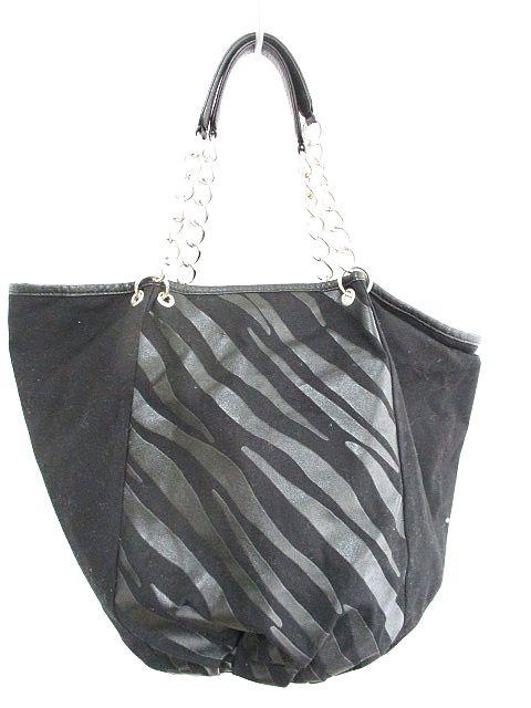 【中古】セオリー theory トートバッグ ゼブラ チェーン トート 黒 レディース