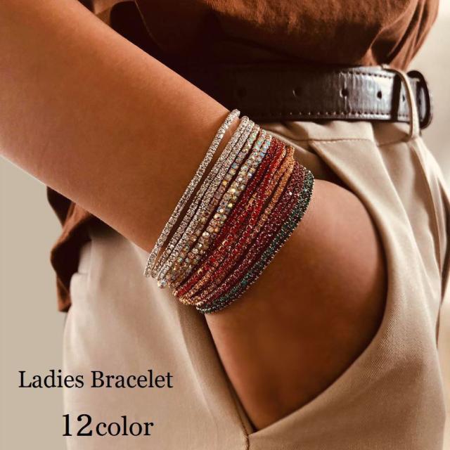 小さなラインストーンがおしゃれなレディース用テニスブレスレットです。